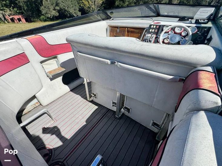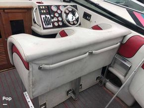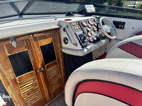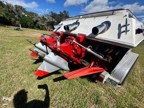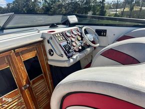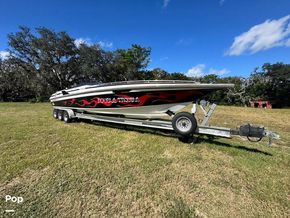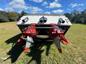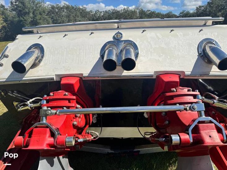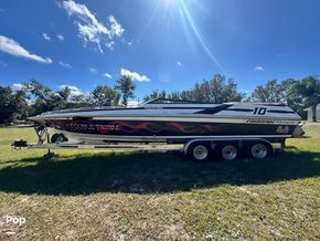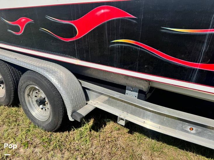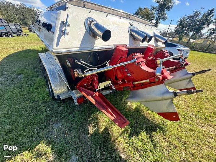 This 33-footer has twin big-block Mercruiser engines (with CMI headers) and a Mercruiser stern drive (with 1450 Huber transmissions). Its hull is designed by Reggie Fountain, which contributes to this boat's extra-special handling characteristics.
